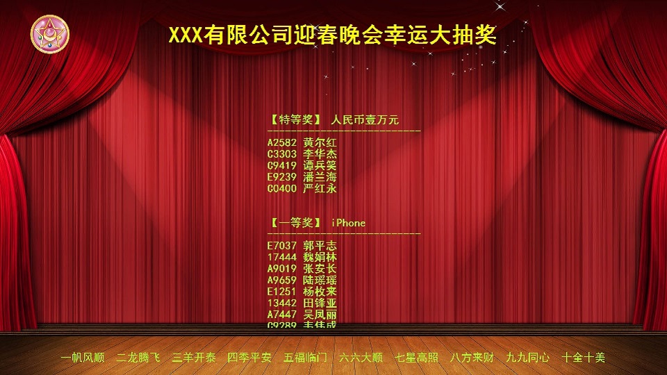 所有奖项抽取完毕后将会自动保存中奖结果并滚动显示所有中奖人员名单。