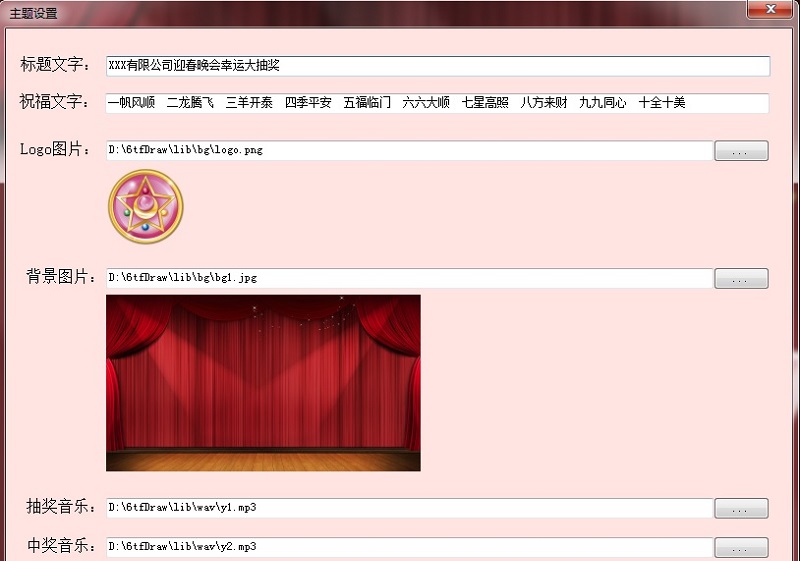 3、支持自定义界面,LOGO、标题、祝福语、背景、音乐等都可以设置。